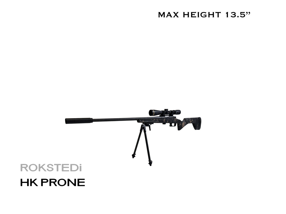 The HK PRONE bipod is for the more serious hunter looking for an extremely light, simple & durable bipod for precision long range prone shots while hunting deep in the mountains.
